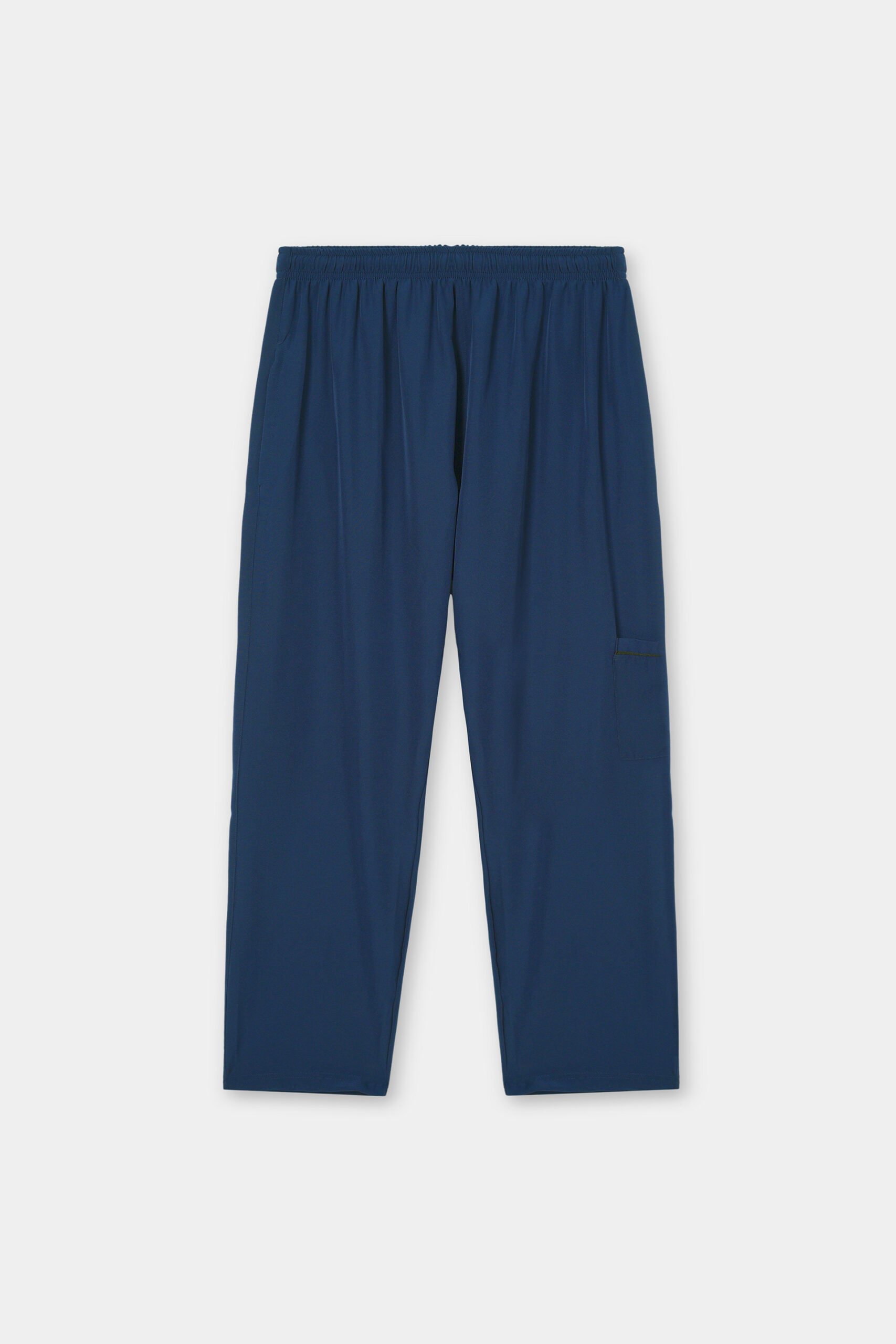 Elasticated waistband with adjustable drawstring for secure comfort. Features include thigh pockets, mobile pockets, and side pockets—maximizing utility for the modern professional.