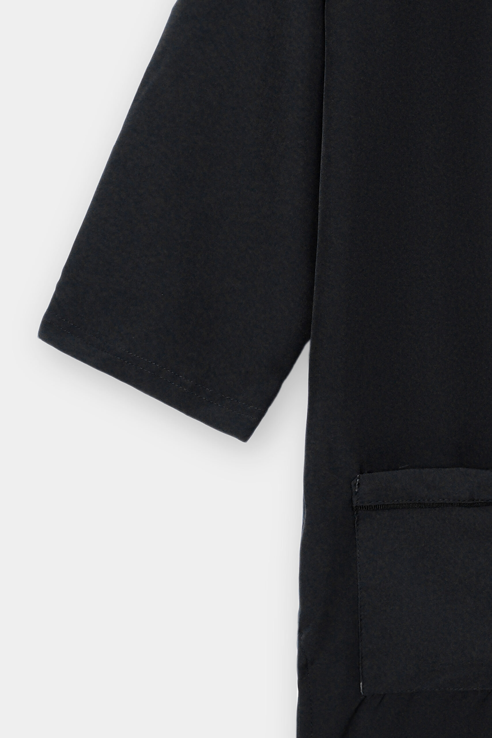 Classic V-neck cut tailored for women, reinforced with double needle stitching, plus functional pockets and side vents for ease of movement.