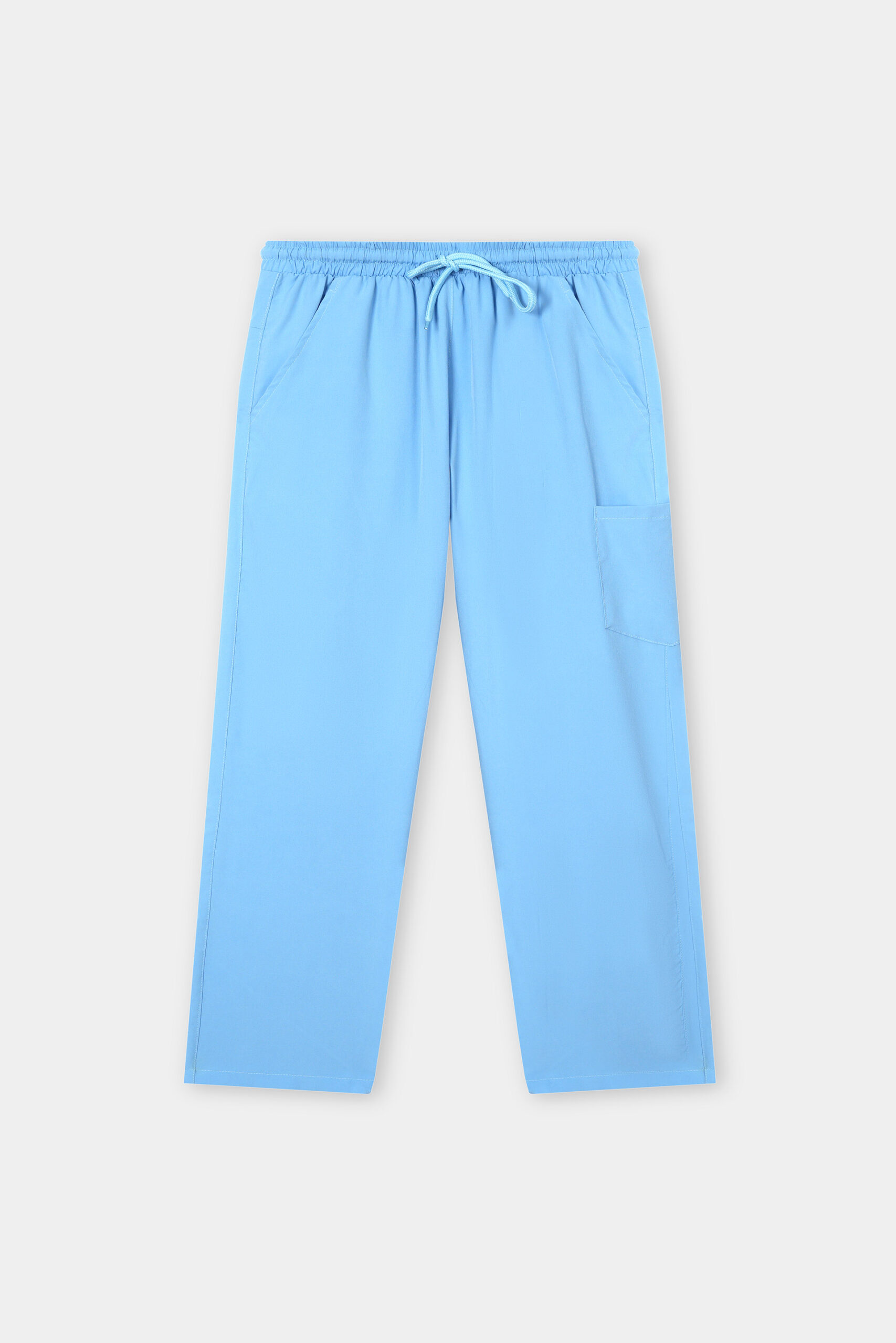 Elasticated waistband with adjustable drawstring for a secure, tailored fit. Features multiple pockets—thigh, mobile, and side—for maximum practicality during busy shifts.