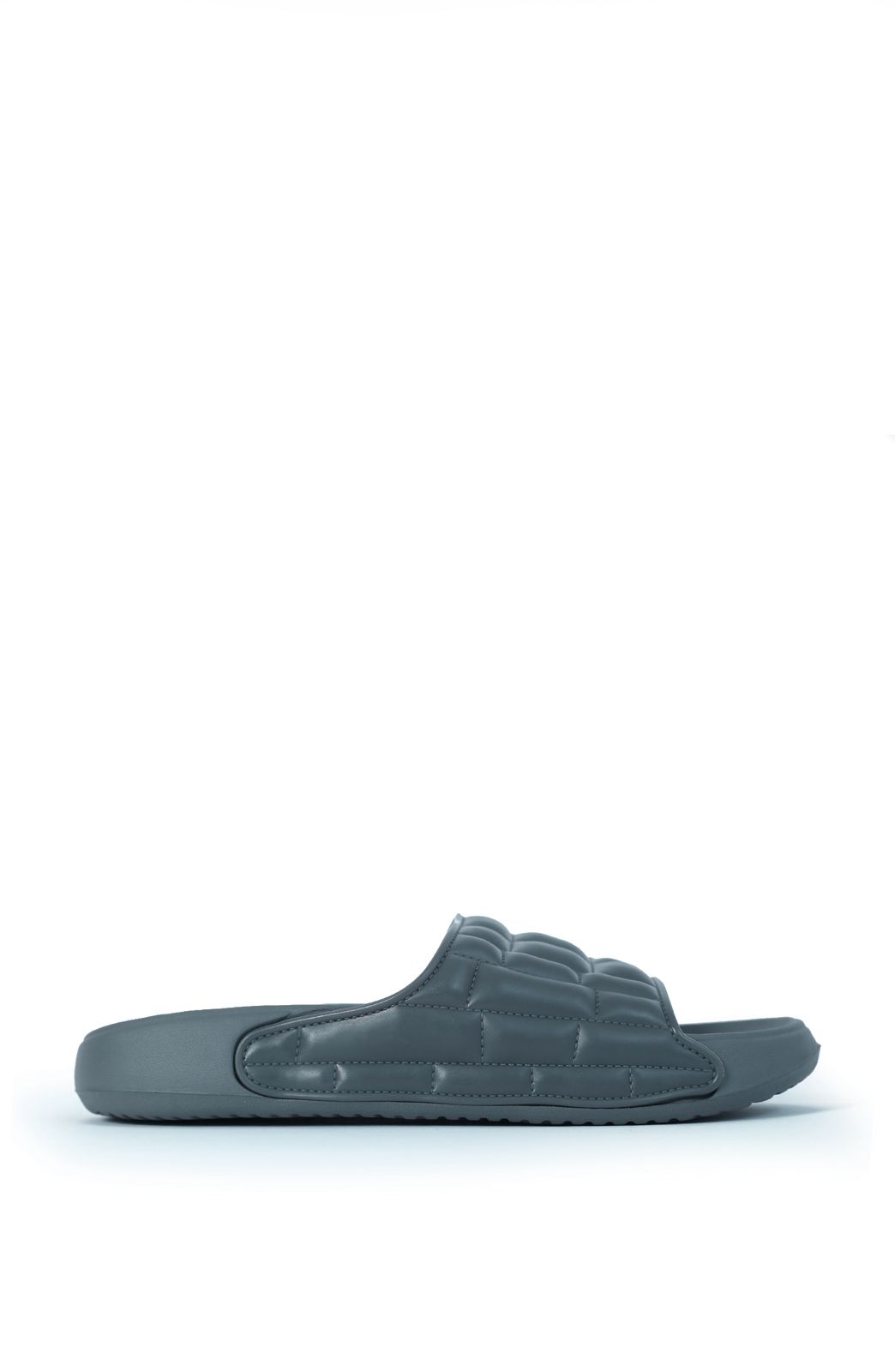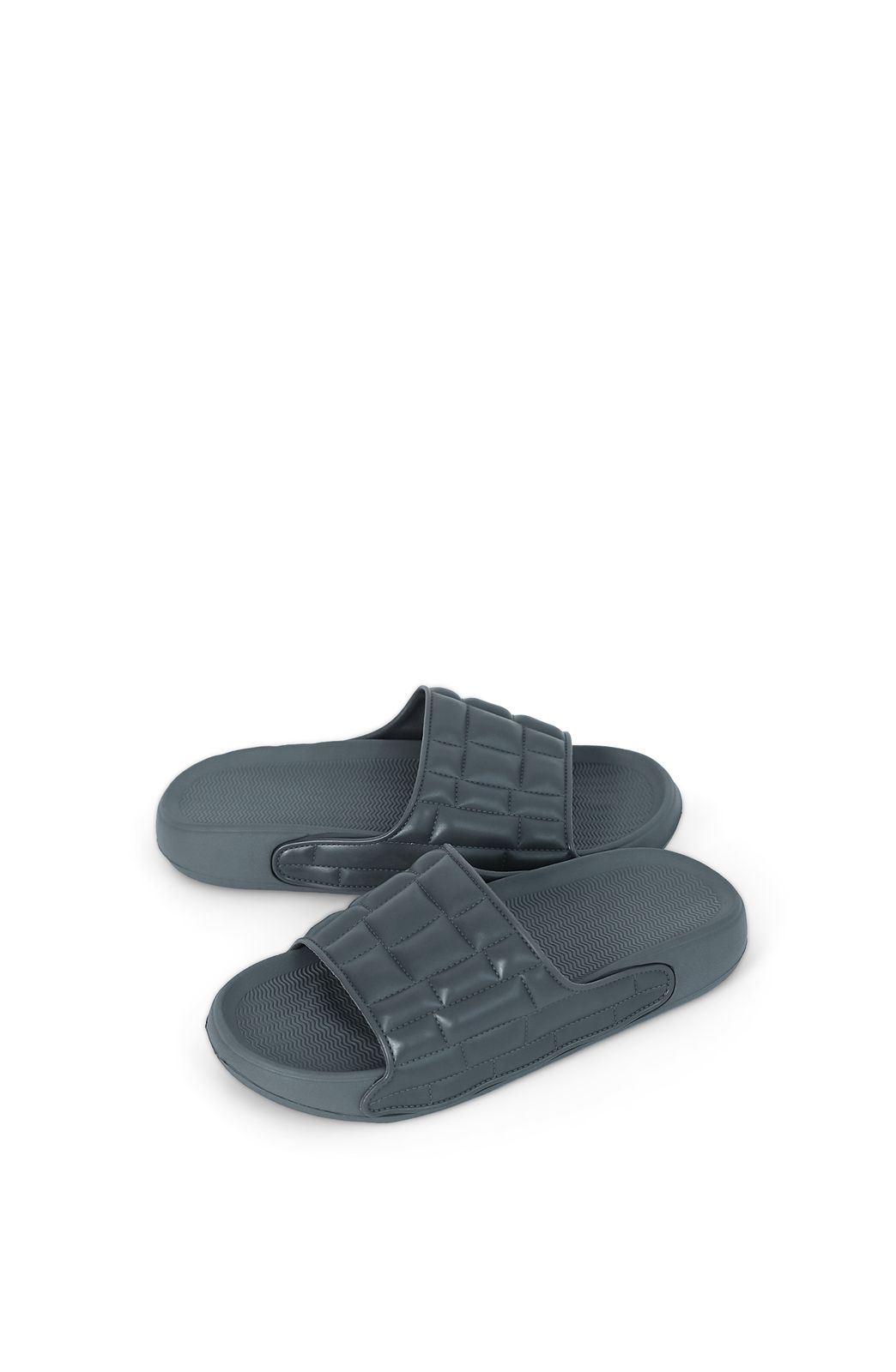 Charcoal Gray Quilted Slide Sandals with Cushioned Footbed